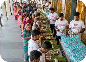 We at RP Mission believe that nobody should have to go hungry. Our Annadanam Seva aims to offer a chance at hope and nourish-ment, one meal at a time, going beyond simply providing food. To ensure that no one in need is overlooked, we serve fresh, wholesome meals to more than 500 people three times a day.