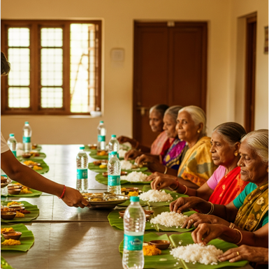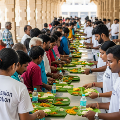 In addition to our regular services, we provide our Annadhanam Seva at temples on the occasion of bigger festivals and religious ceremonies. At these times, we provide free meals to thousands of pilgrims so that no one has to miss out on the celebrations because of hunger. These occasions give a special chance to serve the religious community, with the assurance that no ong, will go hungry while performing religious rituals.
